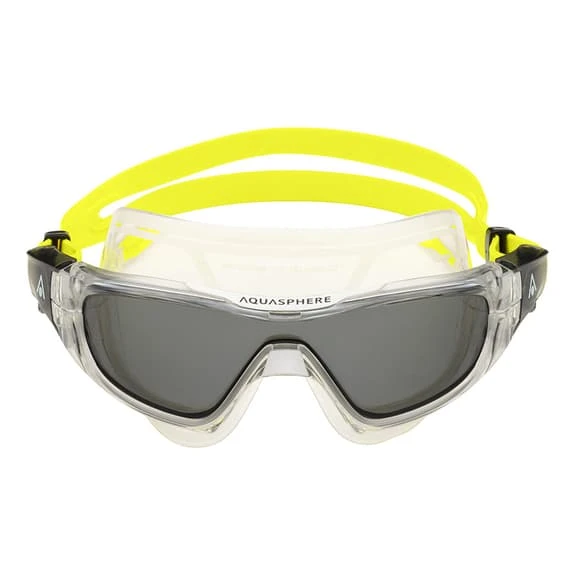 Aqua Sphere Vista Pro swimming goggles with dark lenses are designed with the open water adventure swimmer in mind. They offer the largest field of view through their unique curved lens. Using the latest technologies, Advanced Fit Technology (AFT) has been incorporated into the silicone skirt to provide the best fit and comfort for a wide range of faces. The new buckle system integrates a new pivot technology that provides two important advantages: structural stability and fit.