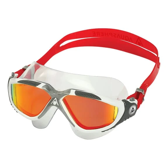Aqua Sphere Vista swimming goggles with mirrored lenses are popular with open water swimmers ready for a challenge. Durable silicone goggles made for unpredictable environments. Vista’s low profile virtually eliminates all drag experienced with other swimming goggles. With their soft silicone rim and one-touch buckle, a comfortable, customised fit is guaranteed, so you can focus on your swimming, not your equipment.