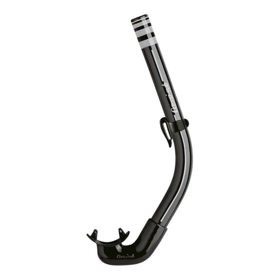 The Cressi America snorkel is an anatomically designed snorkel that adapts to facial profiles, without angles and without impairing hydrodynamics. The diameter is generous and the moderate overall length provides easy emptying and venting. This snorkel is flexible and unbreakable as it has no rigid parts that can fracture. The silicone mouthpiece is comfortable and orthodontically designed for comfortable and long-lasting use.