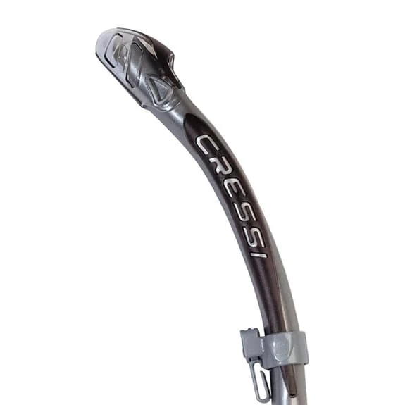 The Cressi Corfu snorkel has an anti-splash top deflector that reduces the accidental entry of water due to waves. The design has been designed so as not to impair the ventilation flow. The lower part has a smooth silicone corrugated interior that keeps the mouthpiece always correctly positioned and does not interfere with the regulator when it is placed in the mouth.