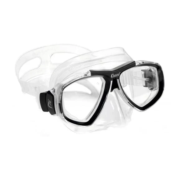 The Cressi Focus diving mask with clear lenses is lightweight and compact, has a comfortable silicone face mask with excellent fit and great comfort even after prolonged use. Its moderate dimensions, rounded angles and unmatched internal volume/visibility ratio make it ideal for diving, spearfishing, freediving and snorkelling. Focus is equipped with a new, small, rocker-type buckle that is extremely easy to adjust, even when wearing a mask and neoprene gloves. The particular design of the lenses, derived from the legendary Cressi Super-Lince model, is optimal for a total angle of vision in all directions. The symmetrical design of its lenses, as well as the ease of assembly and disassembly of the lenses, make it an ideal model for use as an optical mask, available with prescription lenses for myopia.