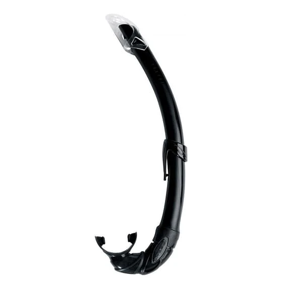 The Cressi Mexico snorkel is a top of the range snorkel specifically designed to achieve a perfect anatomy for the diver with a completely rounded progressive profile. This snorkel has a top deflector to reduce water ingress due to waves with a design studied not to impair the air inlet flow. In addition, it is transparent in very flexible polyurethane with a mixed matt-glossy texture. The wall section of the snorkel is designed to maintain the necessary rigidity in the pressure zone of the mask strap so as not to impair air circulation in this area. Also, it has a very comfortable mouthpiece.