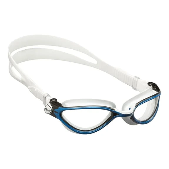 The Cressi Thunder swimming goggles with clear lenses have a design that combines watertightness, hydrodynamics, integration in the orbits and comfort. The studied design of the central bridge with an outer material and another in the core with different properties, allows an optimum adaptation to all types of physiognomy, maintaining the ideal level of tension so that the goggle does not lose stability and falls off during use. In addition, the polycarbonate lenses are slightly curved towards the outside for maximum peripheral visibility without visual distortion.