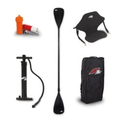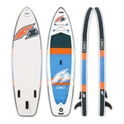 The F2 Comet 10.5 board kit is suitable for windsurfing and includes the 10.5′ Sector board, along with bungee cords for safe storage, top of the range equipment and handles on the front and back for easy transport.