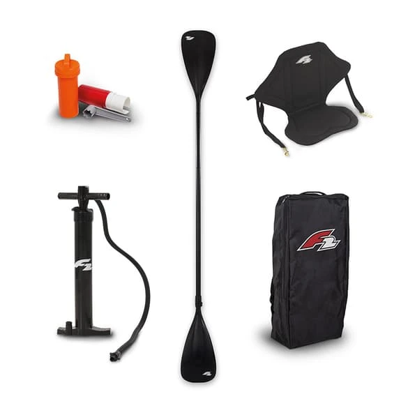 The F2 Sector 10.5 board kit is suitable for windsurfing and includes the 10.5′ Sector board, along with bungee cords for safe storage, top of the range equipment and handles on the front and back for easy transport.