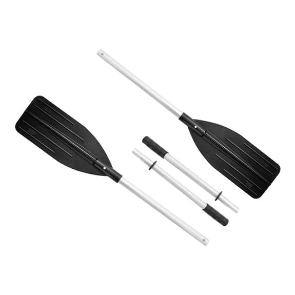 The Intex Boat Detachable Oars have a length of 137 cm each. They stand out for being divided into 3 parts for easy storage and so that they can be transported comfortably taking up less space in the backpack or inside the boat. In addition, the oars are fitted with retaining rings for the locks, which prevent the blades from coming apart during rowing. The paddle set comes in a practical polyethylene net bag with handle.