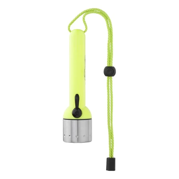 The Led Lenser D14.2 400 lm dive light provides constant light and its casing is shockproof and corrosion-proof. It has temperature control and an ambidextrous magnetic switch. When the battery is low this lantern will give a warning.