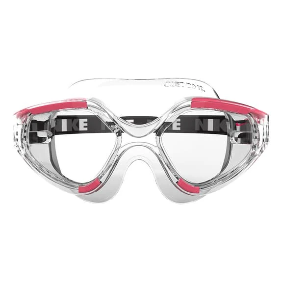 The Nike Expanse swimming goggles with clear lenses are made with an ultra-soft liquid silicone with flex points that helps keep water out while allowing for natural facial movement.