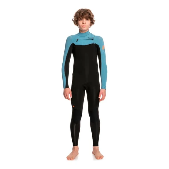 The Quiksilver 4/3mm Everyday Sessions wetsuit for kids is ideal for open water activities such as surfing. It is made of nylon and elastane and the seams are triple invisible glued and stitched to reduce water ingress. Made with WarmFlight Eco Velvet zoned thermal lining and eco-friendly lamination with Aqua glue. Ideal for surfing