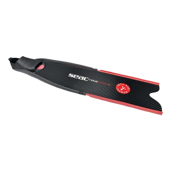 Seac Motus Carbon fins are ideal for apnoea. They have a closed foot pocket made of two materials of different densities. The Motus Carbon has a 22º angle between the blade and the footplate for the best optimisation of the drive. The blade is made of special technopolymer formulated to offer flexibility, resistance and response capacity.