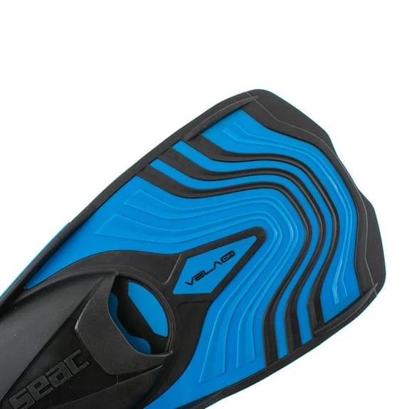 The Seac Vela Oh fins are easily adjustable, the fins have a closing system by means of a highly elastic and resistant elastomer strap. Paddle made of a special polyolefin resin and a foot pocket made of thermoplastic rubber.