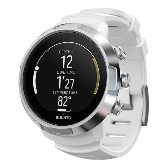 – Optional wireless air integration: current tank pressure and remaining air time via Suunto Tank Pod transmitter (not included)