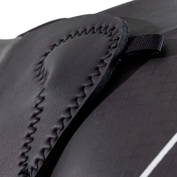 The biorobot is a cutting-edge material that collects energy from the atmosphere and re-emits it to be absorbed by the body. The infrared emitting material consists of a synthetic rubber made in a honeycomb structure sandwiched with a woven technical yarn to create a trilamination structure. This use of light energy heats the entire path of the legs and muscles and changes the way heat is felt through technology. The Material has been shown to increase blood flow by opening capillaries, which reduces lactic acid buildup and fatigue in the legs so they have more power available right out of the water.